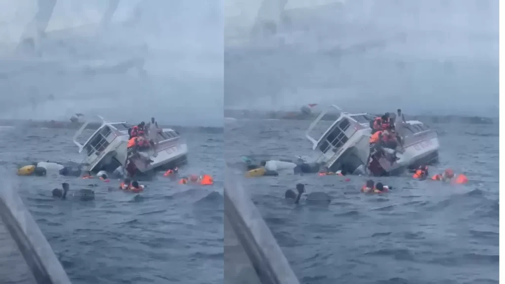 Shocking video has emerged of a speedboat capsizing off the coast of Bali while carrying dozens of passengers back to –