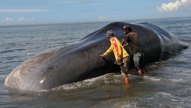 The corpse of a 10-meter-long 2-ton sperm whale (Physeter macrocephalus) washed shore near the public pier on Serangan Island, near Sanur, Bali, on – Read More...